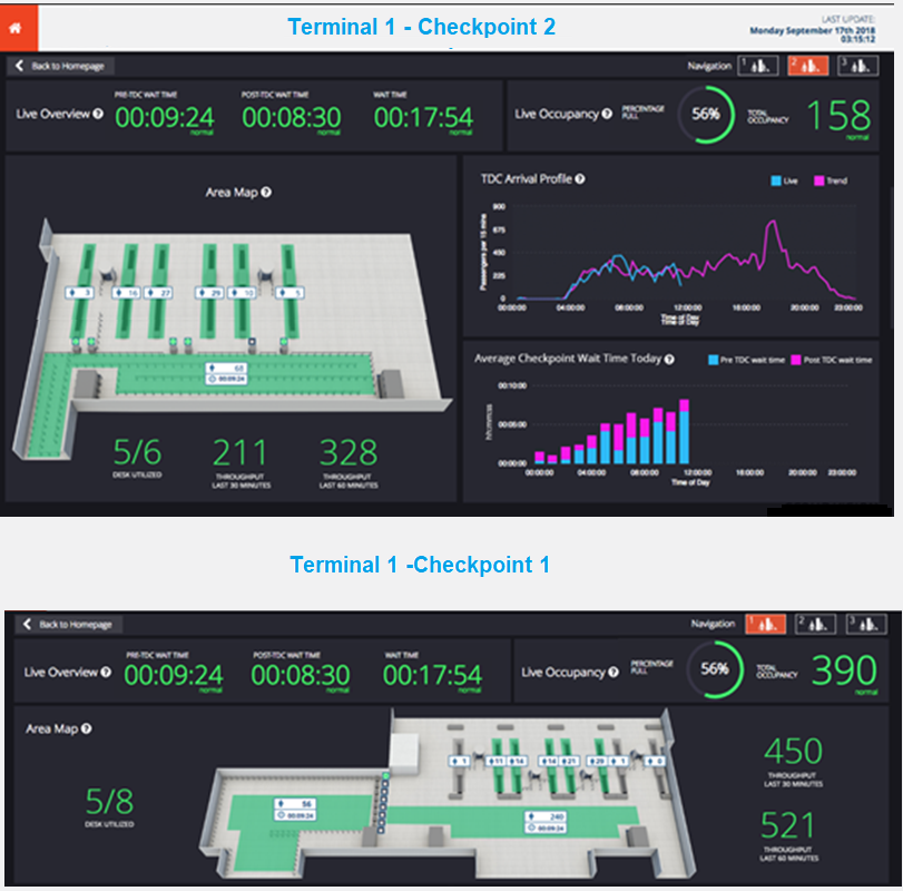Passenger tracking is also useful to measure amount of passengers in checkpoint lanes to notify pasengers of wait times and manage the number of people working at the checkpoints.